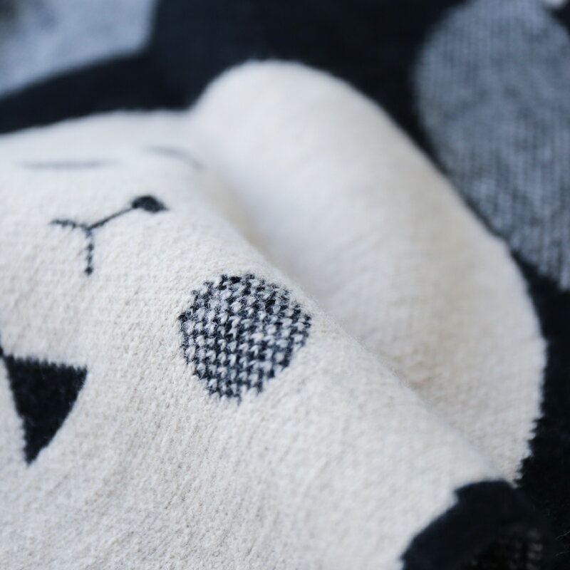 Donna Willson / トーテムポールのマフラー ユニークなモチーフが可愛い、トーテムポールを表現した大判のマフラーです。