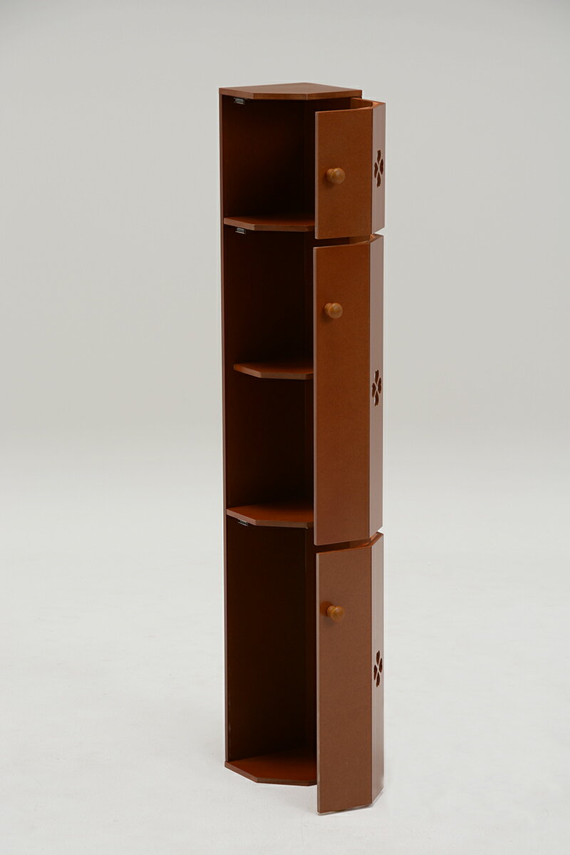 送料無料 コーナートイレラック 幅16cm 奥行16cm コーナーラック スリム おしゃれ 薄型 トイレ 収納 扉付きトイレットペーパー ストッカー 掃除用具入れ コンパクト 木製 隙間収納 収納棚 省スペース サニタリーラック すき間収納 シェルフ 整理棚 茶 ブラウン MTR-6655MB