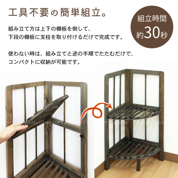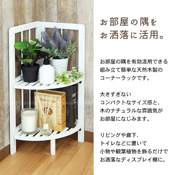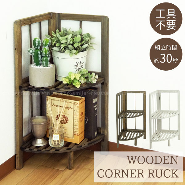 ウッデンコーナーラック WCR /木製 ラック ウッド マルチラック コーナー 角 隅 折りたたみ コンパクト スリム 棚 2段 収納 簡単 組立 工具不要 天然木 杉 木目 ディスプレイ 室内 玄関 トイレ