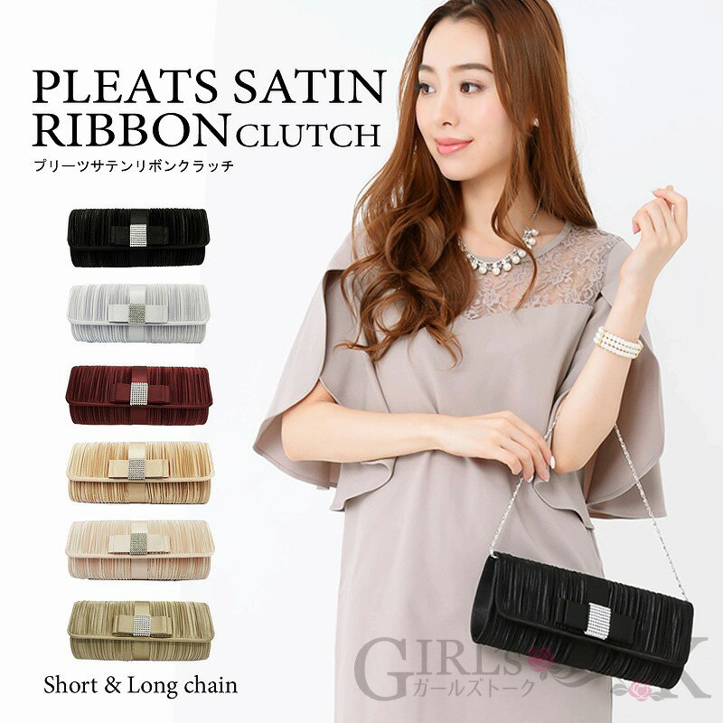 プリーツリボンサテンクラッチ レディース 女性 小さめ 結婚式 ウエディング パーティ 二次会 セレモニー イベント お呼ばれ 2way ショルダー 肩掛け シンプル フォーマル キレイめ 黒 大人女子 人気 可愛い かわいい おしゃれ 無地 送料無料