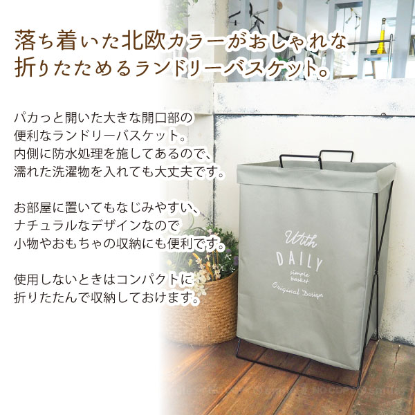 落ち着いた大人北欧カラーがおしゃれな折りたためる大きな開口部のランドリーバスケット。