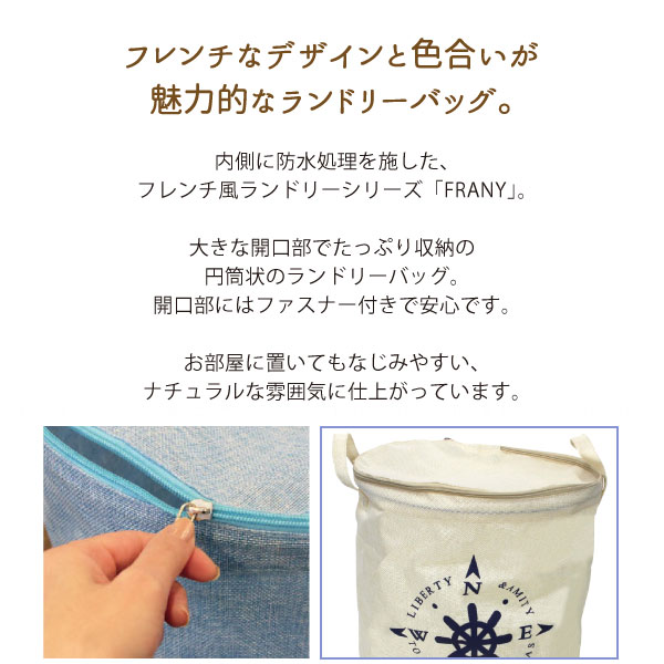 内側に防水処理を施した、フレンチ風ランドリーシリーズ「FRANY」。