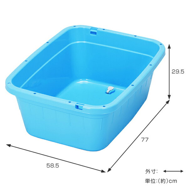 サイズ約 幅58.5×奥行77×高さ29.5(cm)内容量1個(容量:約80L)材質本体:ポリプロピレン、水抜栓:ポリエチレン生産国日本製備考商品区分バケツ・タライカテゴリから探す●野菜洗いや飲料の冷却、園芸にアウトドアなど様々な用途に使える容量約80Lのタライです。