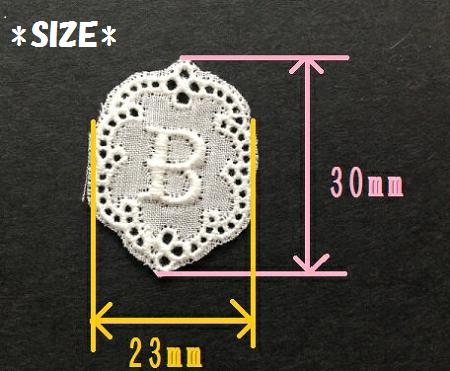 イニシャルの可愛いレースモチーフ サイズ 縦 30mm 横 23mm 色 オフホワイト 素材 ベース 綿100% 表糸 綿100% 裏糸 綿100% ご注意 お客様の画面上と実物では多少色具合が異なって見える場合もございます。